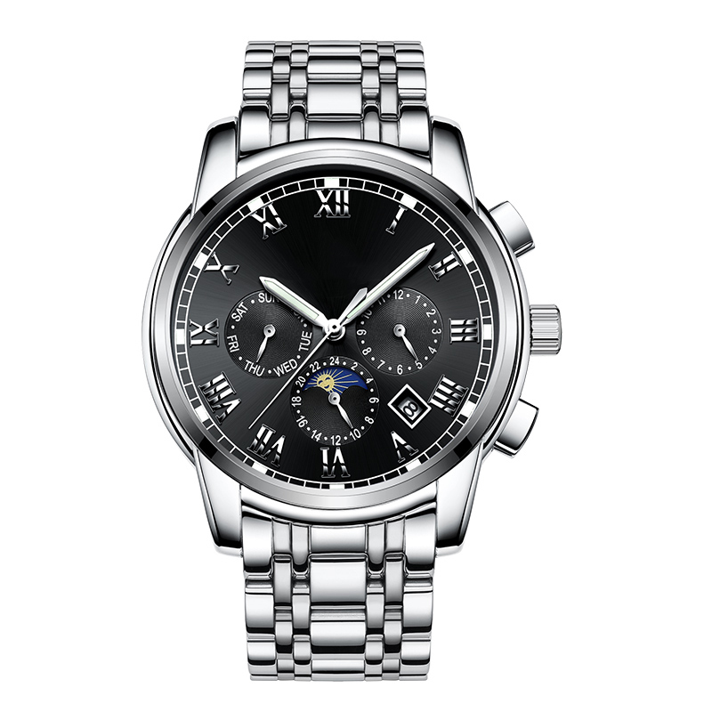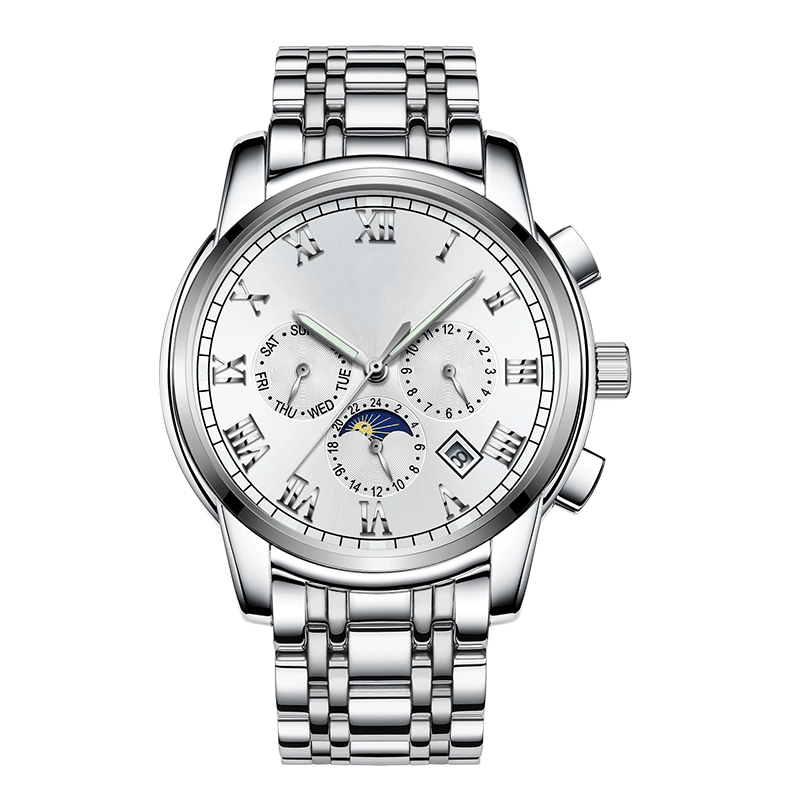 Moon phase, chronograph, calendar
